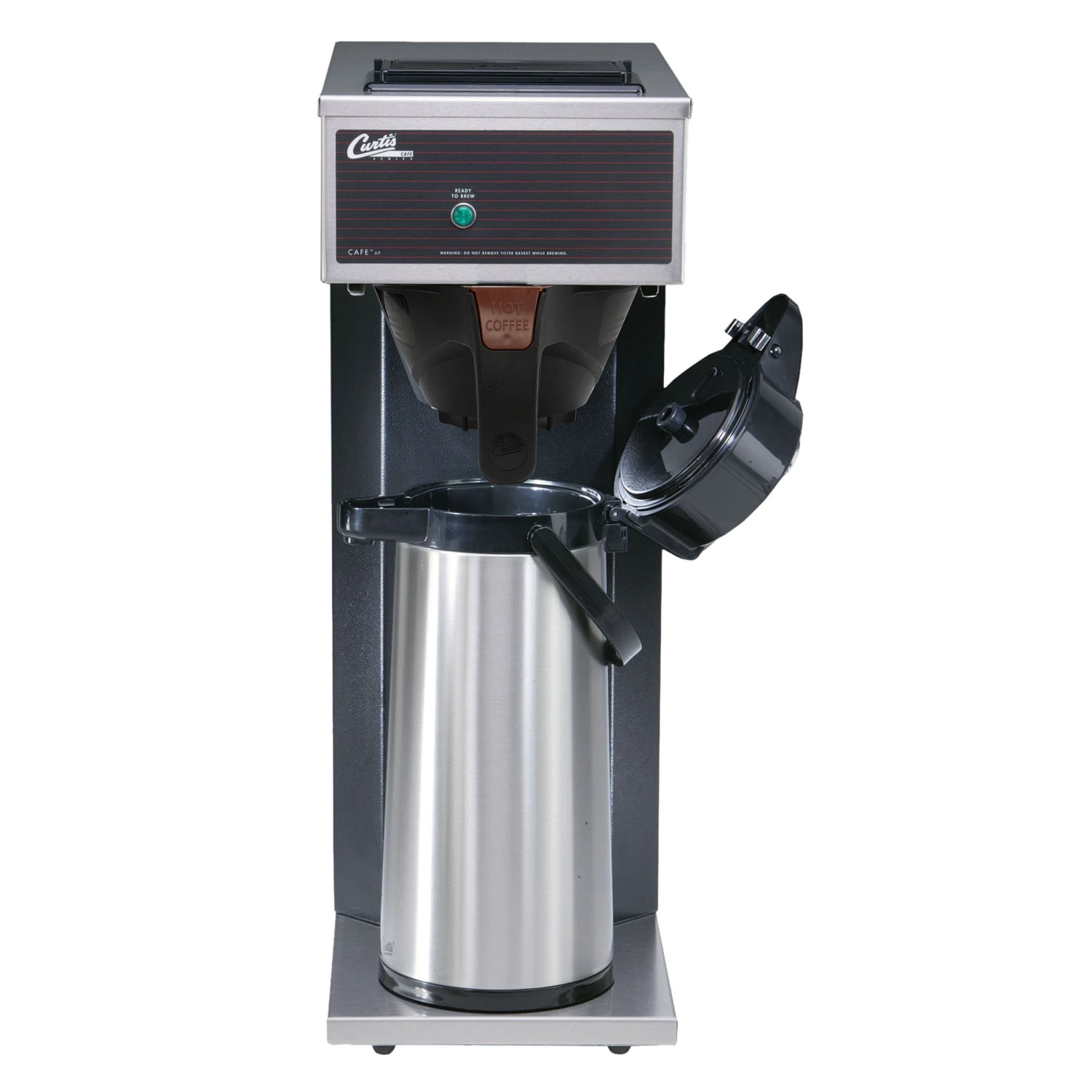 This brewer requires no plumbing and plugs into a standard 120VAC wall receptacle. Simply place the CAFE model in the desired location, pour in water, and connect the power. Itâs ready to go. A brew-ready light tells you when the water has reached the proper brewing temperature.